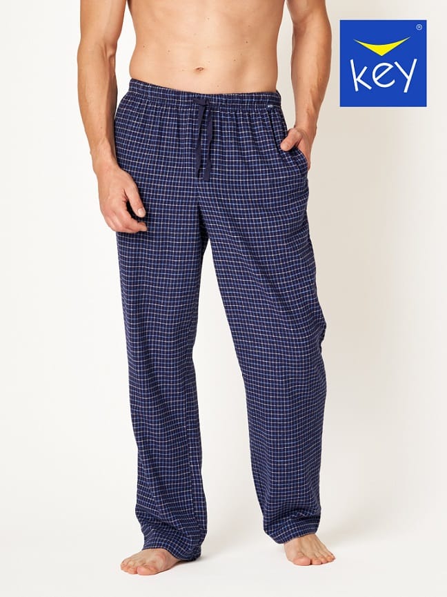 Klasyczne spodnie o prostym kroju nogawki z wygodną, miękką gumę I troczkiem w pasie. Z przodu rozporek na guziki, a po bokach głębokie kieszenie. Skład: 100% flanela bawełniana.