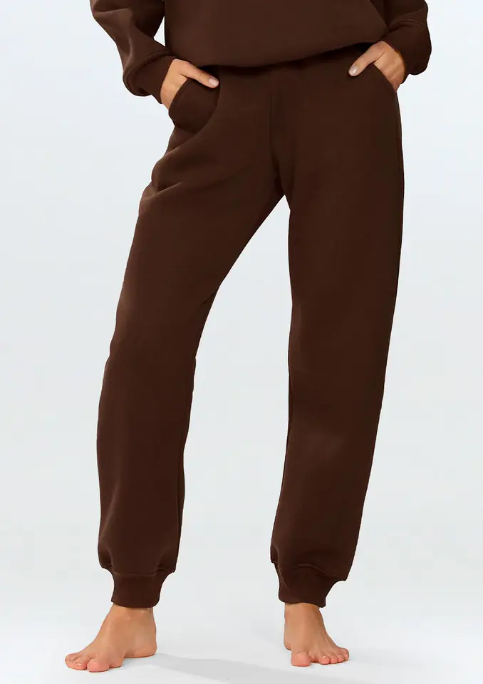 Spodnie Rehema CZEKOLADA BAWEŁNA GRUBA kolor czekolada, rozmiar S