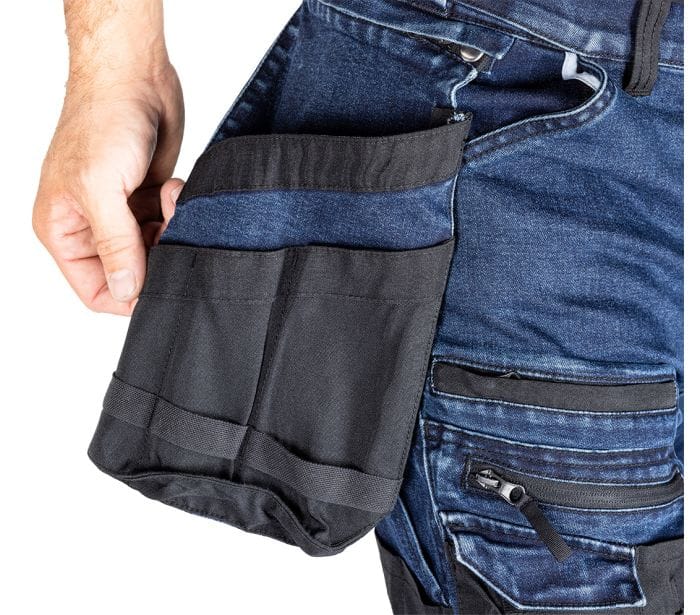 Spodnie robocze DENIM, wzmocnienia Cordura, odpinane kieszenie kaburowe, granatowe, NEO TOOLS to funkcjonalne i wytrzymałe rozwiązanie stworzone z myślą o komforcie i trwałości w wymagających warunkach pracy. Wykonane z tkaniny jeans ze składem 82% bawełny, 16% poliestru i 2% elastanu - łączą w sobie wytrzymałość z elastycznością, zapewniając odpowiednią swobodę ruchów. Wzmocnienia z tkaniny Cordura na kolanach, dole nogawek, z tyłu oraz kieszeniach zwiększają ich odporność na zużycie, dzięki czemu nadają się do intensywnej pracy.