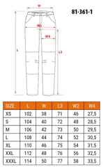 Dzięki odpinanym kieszeniom kaburowym, wielofunkcyjnym kieszeniom - dodatkowo wzmocnionym oraz wyposażonym w zamki, elastycznemu pasowi i zaczepowi na narzędzia – ten model odzieży BHP sprawdzi się w każdej sytuacji w środowisku roboczym.
