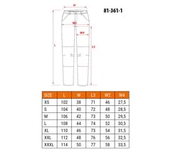 wzmocnienia na kolanach, w dole nogawki i z tyłu,