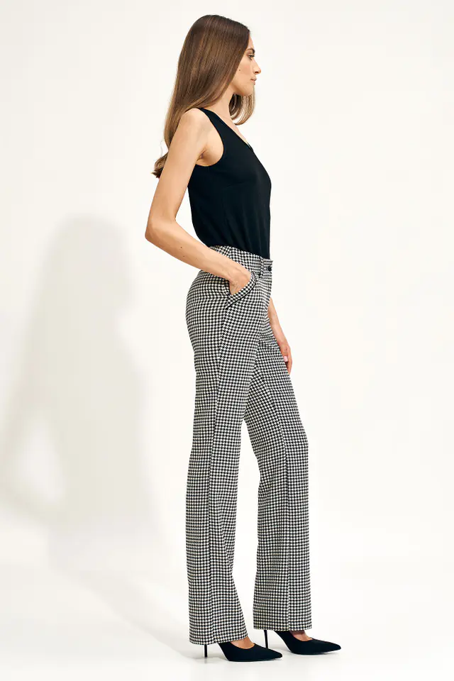 Spodnie typu flare w pepitkę - SD97 kolor pepitko, rozmiar 36