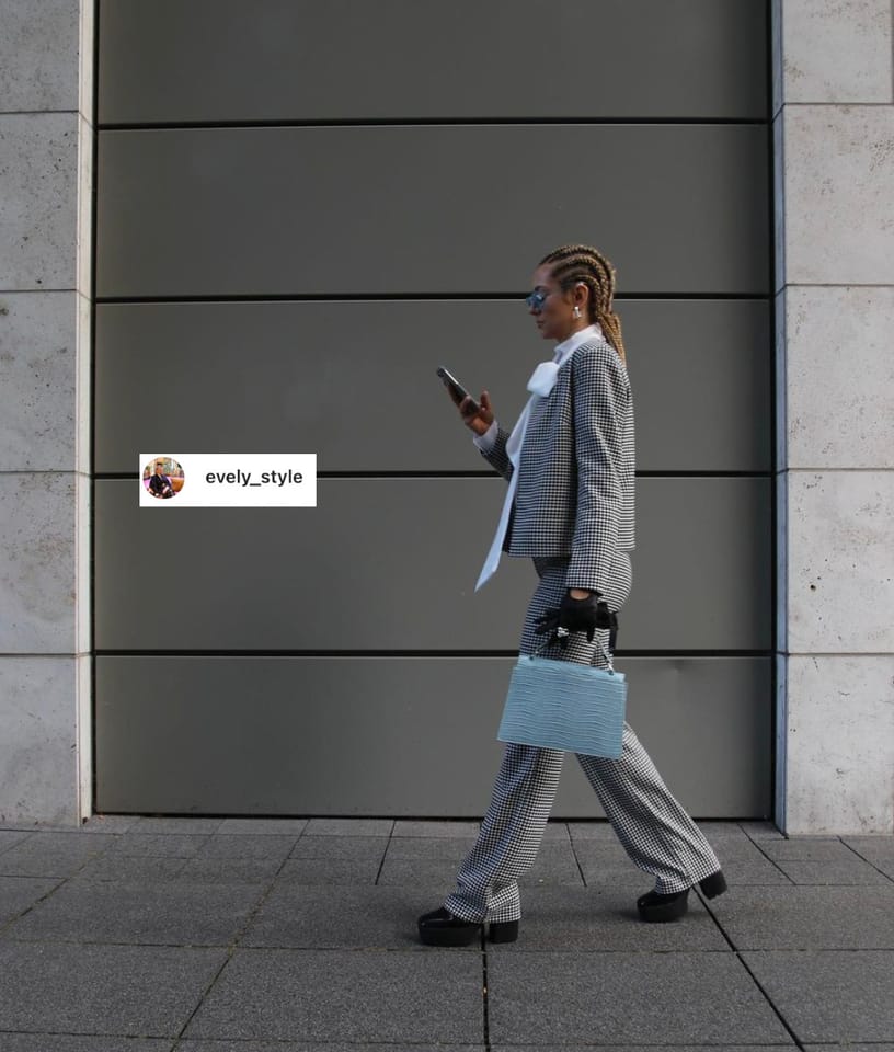 Klasyczne spodnie typu flare. Klasykę przełamujemy najmodniejszym w tym sezonie printem w pepitkę. Spodnie posiadają rozszerzane nogawki i dopasowany krój, dzięki czemu podkreślają figurę, idealnie będą prezentowały się z butami na obcasie lub koturnie. Razem z marynarką w tym samym wzorze tworzą elegancki zestaw w stylu #softoffice. Skład: 64% poliester, 34% wiskoza, 2% elastan. Modelka na zdjęciu ma 177 cm wzrostu i ma na sobie rozmiar 36.