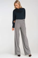 Spodnie wide leg z gumą w pasie i guzikami - pepitko - SD125 kolor pepitko, rozmiar 36