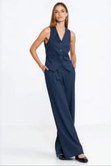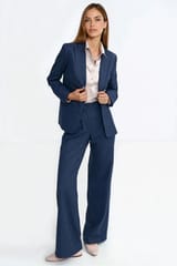 Spodnie z zakładkami, wide leg, prążek - granat - SD129 kolor granat, rozmiar 36