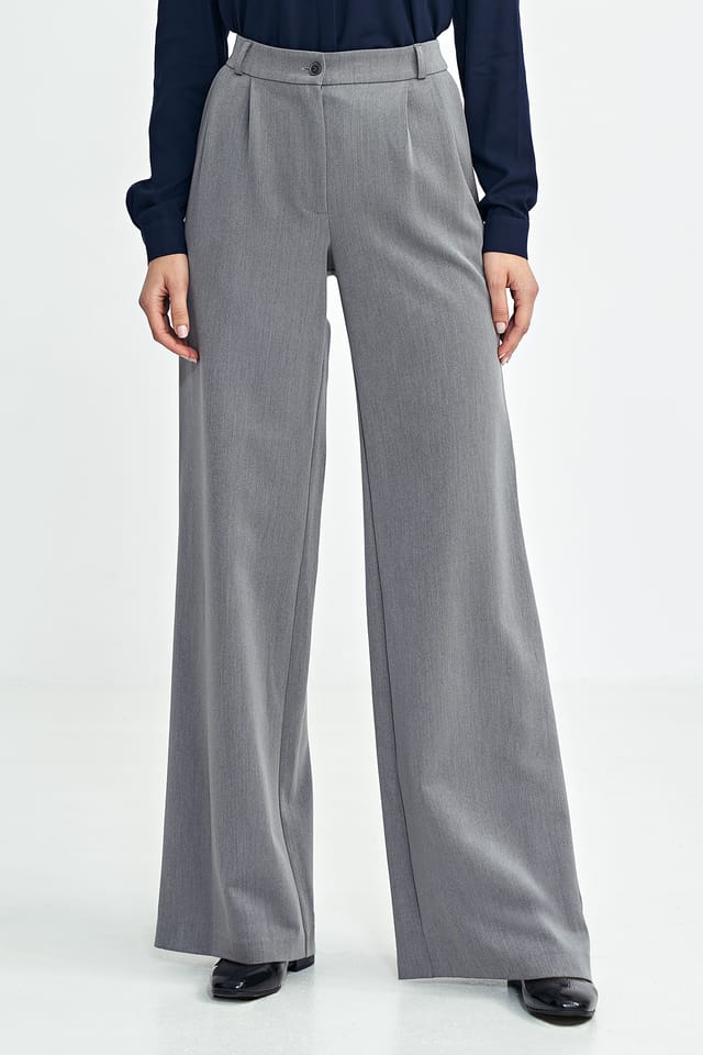 Spodnie z zakładkami, wide leg - szary - SD128 kolor szary, rozmiar 36