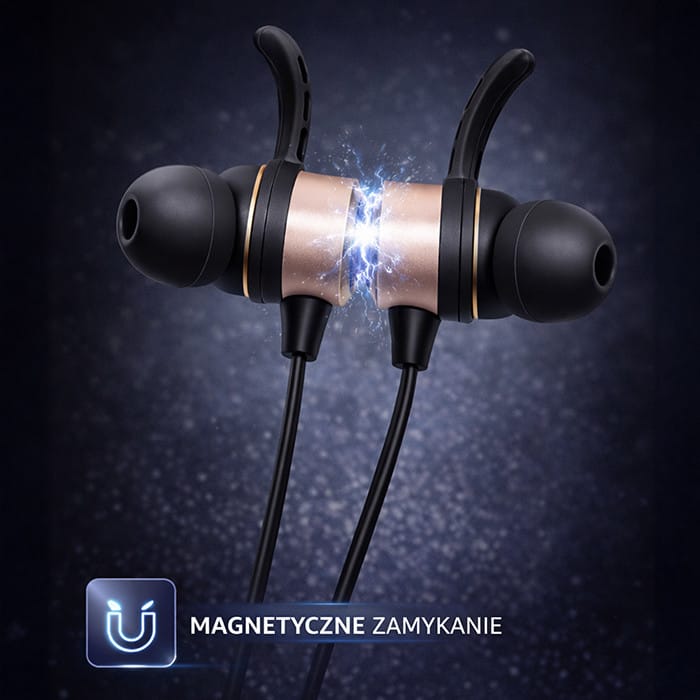 Technologia Bluetooth 5.0 umożliwia bezprzewodowe korzystanie ze słuchawek, a zasięg do 10 metrów zapewnia swobodę ruchów. Magnetyczne końcówki słuchawek pozwalają złączyć je ze sobą, dzięki czemu nie zsuną się z szyi, nie zgubisz ich, a kabel nie poplącze się. Model ten posiada sportowe zaczepy na uszy, co jest doskonałym rozwiązaniem dla osób ceniących aktywny tryb życia.