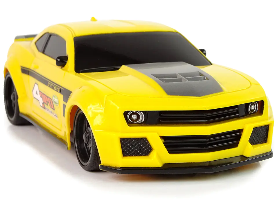 Pięknie będzie prezentował się na wyścigowych trasach w domu ! Samochód posiada lekką i wytrzymałą konstrukcję, sportowy design z czarnymi szybami i żółtym sportowym kolorem karoserii. Gumowe opony gwarantują przyczepność do podłoża podczas sterowania.