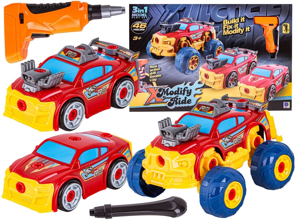 Sportowy, Terenowy Samochód do rozkręcania i skręcania 3w1 TUNING + Wkrętarka Monster Truck