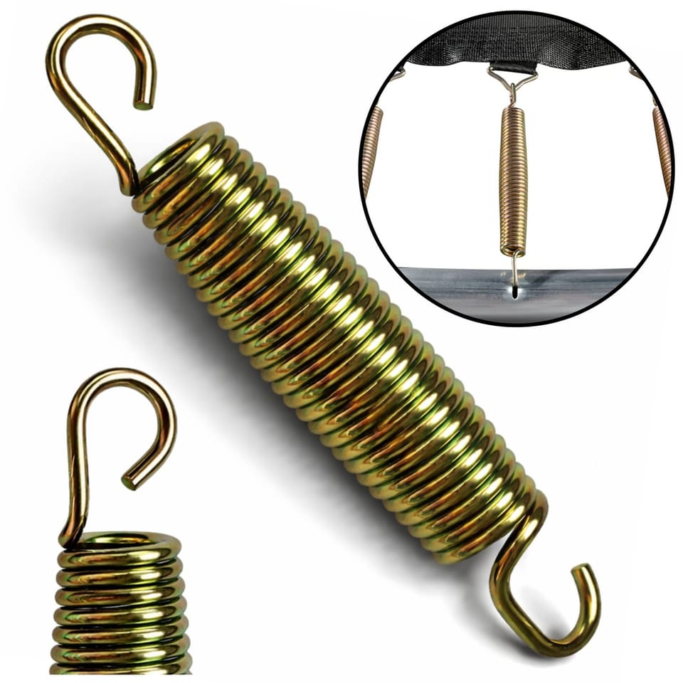 Wytrzymałe sprężyny do trampoliny wykonane z ocynkowanej stali zapewniają odpowiednią elastyczność oraz bezpieczeństwo podczas użytkowania. Dzięki solidnej konstrukcji i grubości drutu 3 mm gwarantują długą żywotność oraz odporność na warunki atmosferyczne.
