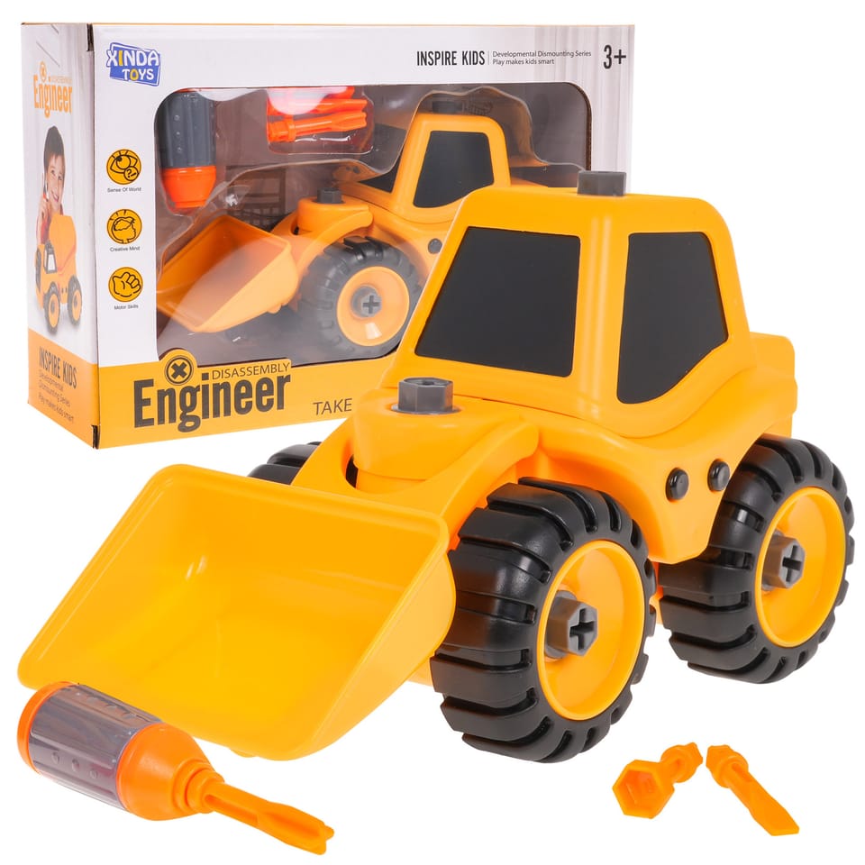 | Zestaw, pojazd do skręcania ze śrubokrętem to propozycja dla małych konstruktorów od 3-go roku życia. Twoja pociecha może zdemontować pojazd i zmontować go ponownie. Pojazd wykonano z najlepszej jakości plastiku, można skręcać i rozkręcać go dowolną ilość razy, bez obawy o uszkodzenie elementów. W zestawie znajduje się śrubokręt z wymiennymi nasadkami. Spychacz posiada ruchome ramię i łyżkę. | |