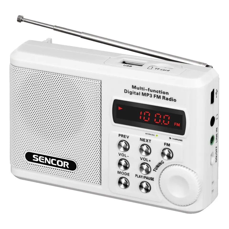 | Pozostałe parametry: | Odtwarzanie MP3, Długość grania: do 10 godzin, Moc 2 W (RMS), Slot na kartę micro SD (max 8GB), Teleskopowa antena, Wymiary: 72 x 110 x 29 mm, Wyświetlacz LED z czerwonym podświetleniam, Zintegrowane podkreślenie basów, Złącze mini USB do ładowania, Cyfrowy odczyt częstotliwości |