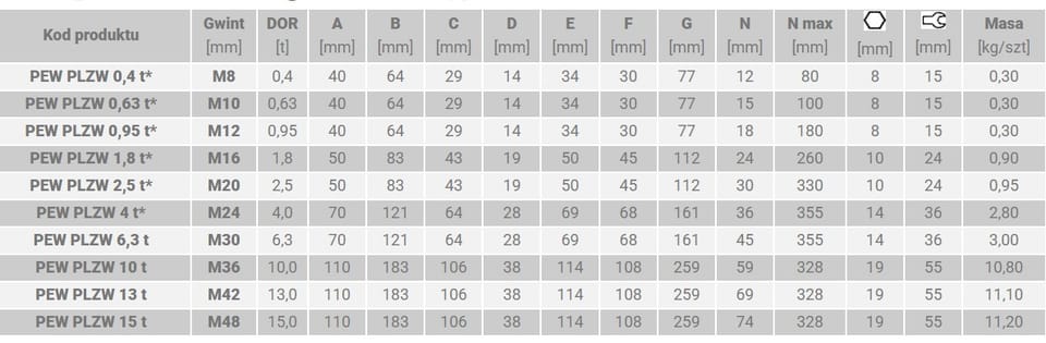 Punkt mocujący PEW PLZW metric.
