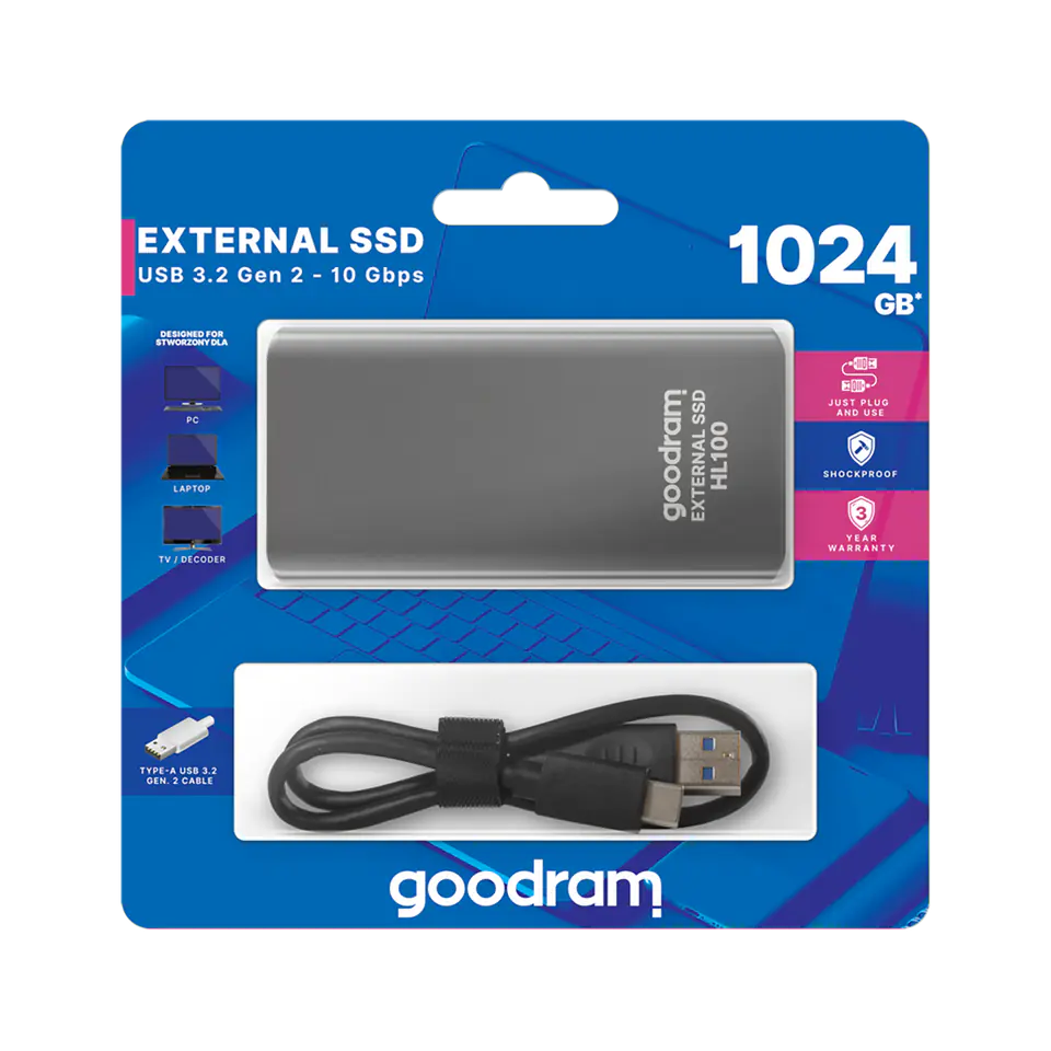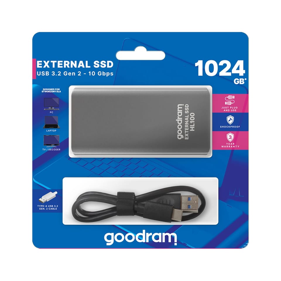 SSD Zewnętrzny Goodram HL100, SSDPR-HL100-01T, 1000GB, szary, 2.5", USB-C