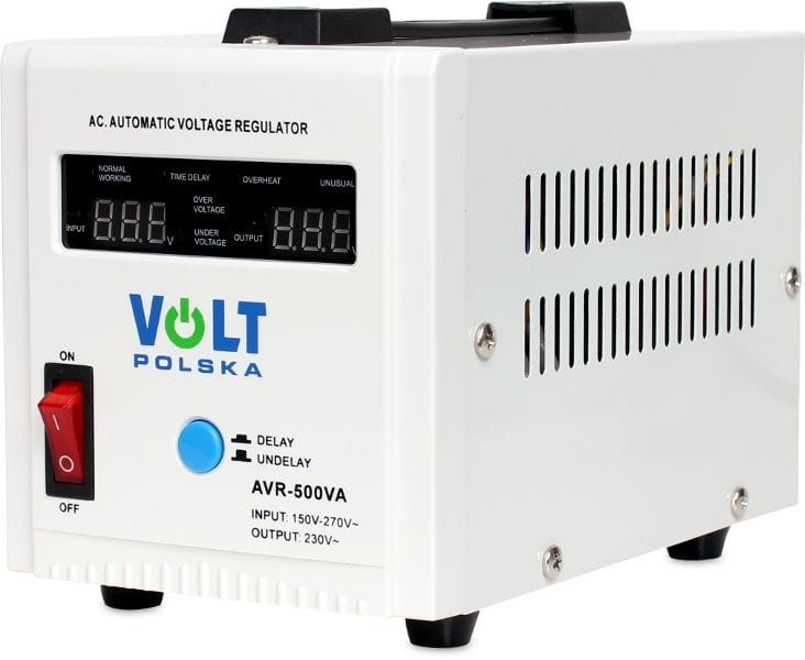 Stabilizator napięcia sieciowego AVR-500VA łączy w sobie cechy 2 urządzeń: regulatora napięcia i urządzenia przeciwprzepięciowego