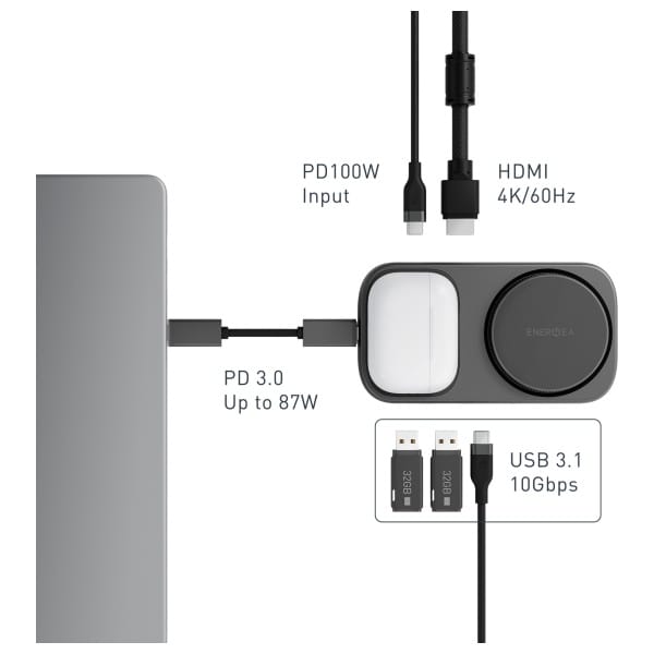 Liczba portów 7 w 1 (1 × USB-C, 2 × USB-A, HDMI, USB-C Host, ładowanie Qi2, ładowanie TWS)