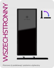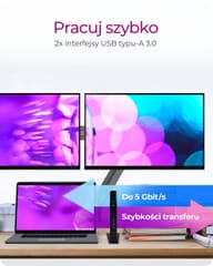 Obsługuje dublowanie i rozszerzanie ekranu notebooka, rozdzielczość do 2x 1980x1080. Możliwość ustawienia w pionie (ze stojakiem) i poziomo.
