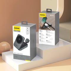 Kod produktu: 1031223Dudao A11 Max to nowoczesna, indukcyjna stacja ładująca 3 w 1, która pozwala jednocześnie zasilać iPhone#8217;a (kompatybilnego z MagSafe), Apple Watch oraz bezprzewodowe słuchawki, takie jak AirPods. Elegancka, składana konstrukcja sprawia, że urządzenie idealnie sprawdzi się w domu, biurze i w podróży. Dzięki magnetycznemu mocowaniu MagSafe i maksymalnej mocy do 15 W stacja oferuje szybkie, bezpieczne i stabilne ładowanie w każdej pozycji - pionowej lub poziomej.Cechy produktu: