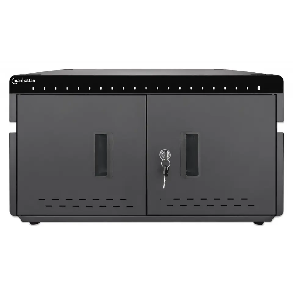 Zarówno złodzieje jak i wandale nie mają żadnych szans w walce z trwałą, solidną, metalową obudową 20-Portowej Stacji Ładującej USB-C PD 360W Manhattan 715959. Zamknij frontowe drzwi na klucz (w komplecie znajduje się zestaw dwóch kluczy) i daj dostęp do stacji jedynie upoważnionemu personelowi. Dwuskrzydłowe drzwi zapewnią swobodny dostęp do ładowanych urządzeń w miejscach o ograniczonej przestrzeni. Wbudowany, niezwykle cichy wentylator oraz sloty wentylacyjne zapewnią maksymalny przepływ powietrza oraz wydajne chodzenie ładowanych urządzeń USB. Gumowe nóżki stacji ładującej zagwarantują stabilność oraz zapobiegną ślizganiu się jej na każdej powierzchni.