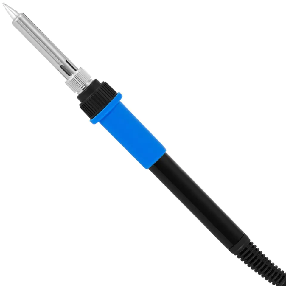 Stacja lutownicza marki Stamos Soldering sprawdzi się w warsztatach elektronicznych,serwisach, małych i dużych przedsiębiorstwach oraz u każdego majsterkowicza. Moc urządzenia wynosi 60 W. Temperatura regulowana jest w zakresie 150-450°C. Szeroki przedział temperatury zwiększa precyzję lutowania i umożliwia lutowanie bezołowiowe. Czytelny wyświetlacz LCD pozwala monitorować przebieg pracy. Włącznik ON/OFF odpowiada za szybkie włączanie i wyłączanie. Kompaktowy rozmiar stacji ułatwia jej transport i przechowywanie. Obudowa urządzenia została zabezpieczona przed wyładowaniami elektrostatycznymi (ESD). Możliwość zmiany końcówki lutowniczej pozwala dostosować ją do aktualnych potrzeb. W komplecie znajduje się urządzenie do czyszczenia końcówek.