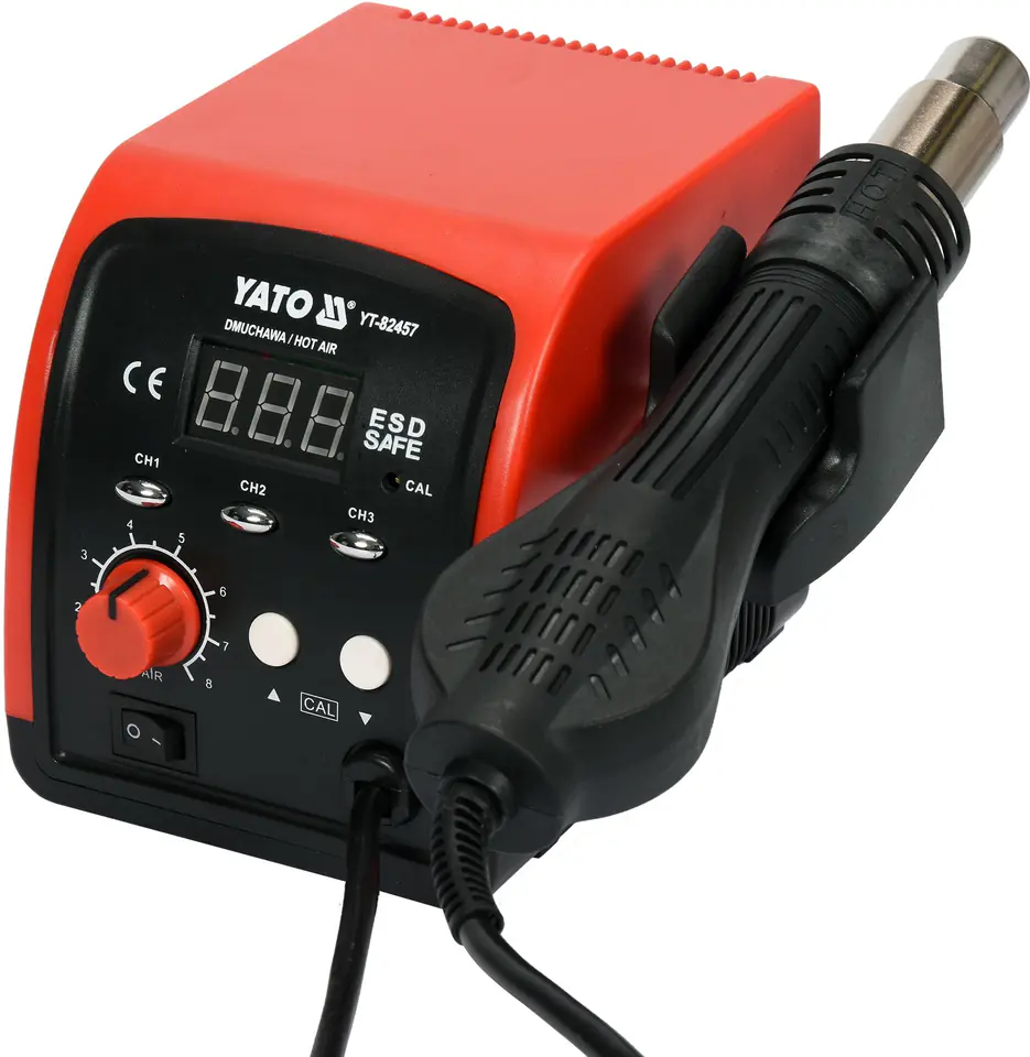 Stacja HOT-AIR gorący nadmuch YT-82457 z cyfrowym wyświetlaczem LED, regulacją temperatury oraz funkcjami poprawiającymi komfort pracy oraz łatwiejsze wykonywanie prawidłowych połączeń lutowniczych. Stacja wyposażona jest w rączkę z nadmuchem napędzanym bezszczotkowym wentylatorem.