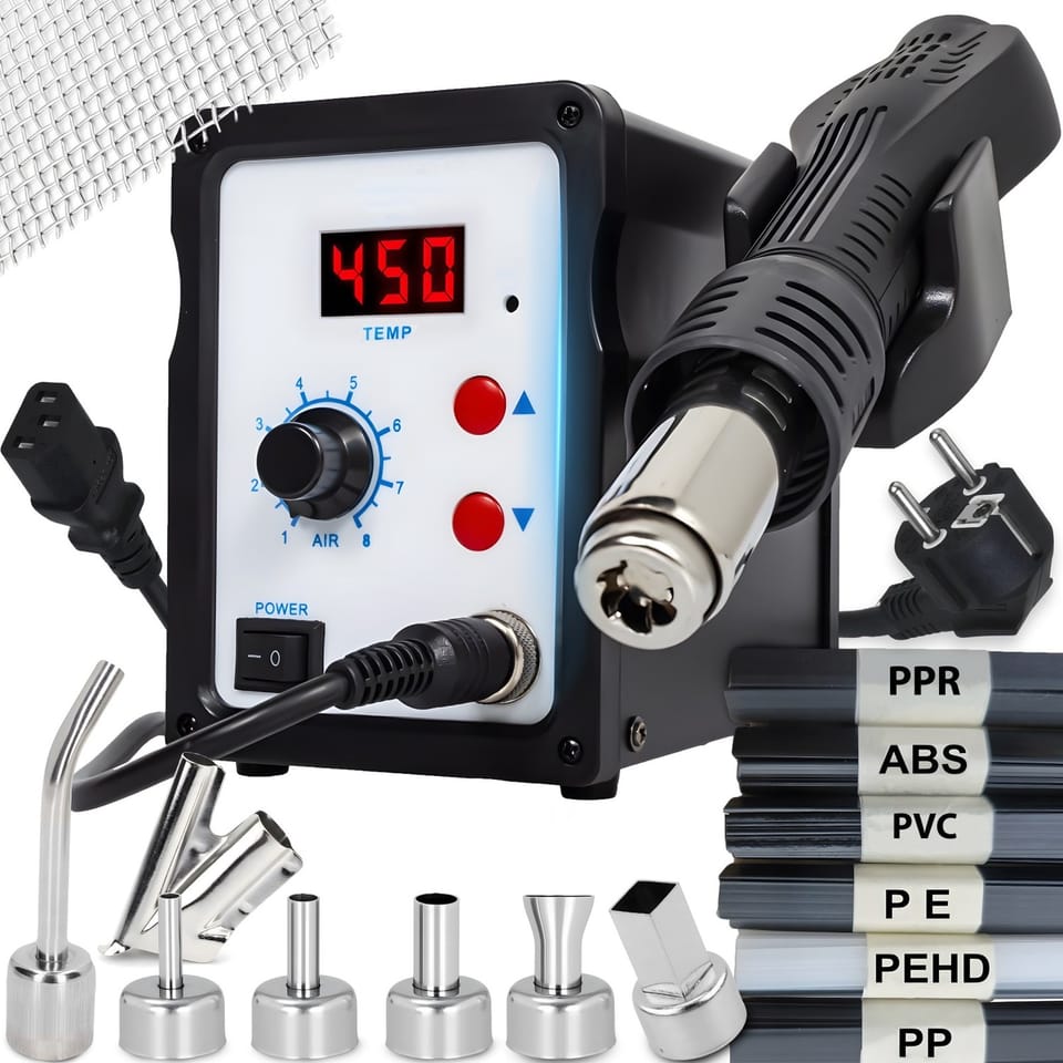 Kod producenta: 1029609Stacja lutownicza na gorące powietrze RETOO ER1208 to wydajne i precyzyjne urządzenie o mocy 800 W, przeznaczone do lutowania elementów elektronicznych, spawania plastiku oraz wykonywania innych prac warsztatowych. Wyposażona w silnik bezszczotkowy, ceramiczny element grzejny, czujnik w podstawce kolby oraz wyświetlacz LED, zapewnia komfort i bezpieczeństwo pracy. Dzięki płynnej regulacji temperatury i przepływu powietrza, stacja umożliwia dokładne dostosowanie parametrów do rodzaju materiału. Model ten idealnie sprawdzi się w elektronice, motoryzacji i majsterkowaniu.Cechy produktu: