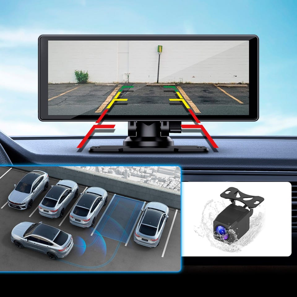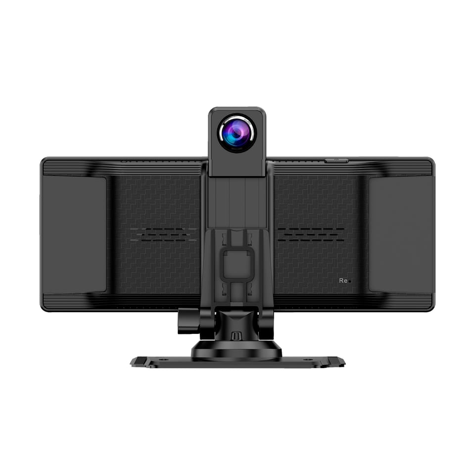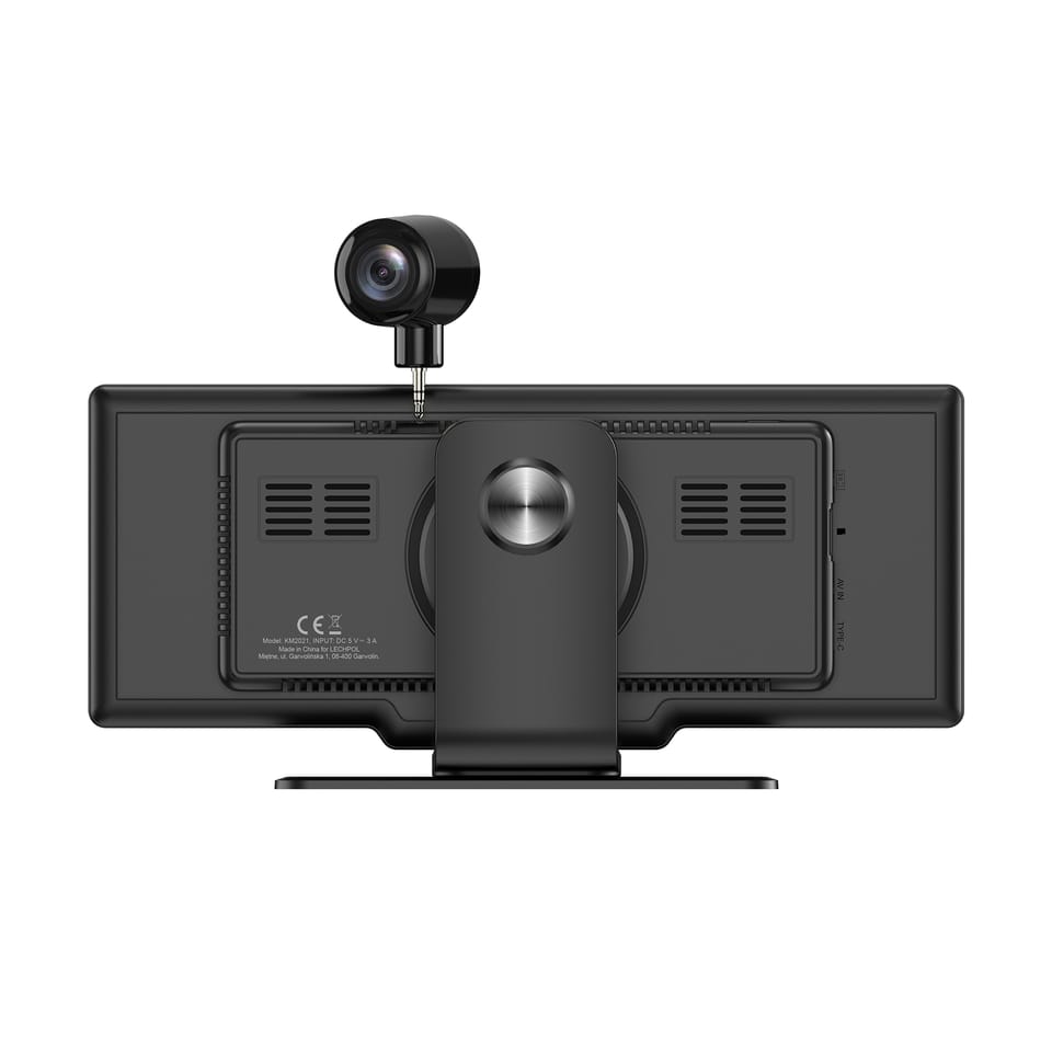 ----------------------------GŁÓWNE CECHY----------------------------Rejestrator jazdy i stacja multimedialnaObsługa Android Auto i Apple CarPlayObsługa AirPlay i MiracastRozpoczęcie nagrywania po zapłonieObracana soczewka kameryKamera cofaniaAplikacja na telefonTryb parkingowy (z zestawem parkingowym)Wbudowany transmiter FM----------------------------DANE TECHNICZNE----------------------------Wyświetlacz: 9'' (dotykowy)Obiektyw kamery przedniej: 140°Obiektyw kamery wstecznej: 120°Rozdzielczość nagrywania: Przód: 2560 x 1440 px / 25 FPSTył: 1920 x 1080 px / 15 FPSMaksymalna rozdzielczość zdjęć: 1920 x 1080 pxFormat zdjęć: JPGFormat plików wideo: TSTryb nagrywania: w pętliMaksymalna pojemność karty pamięci: 256 GBBluetooth: 4.2Wi-Fi: 2,4 GHz / 5 GHzMikrofon: wbudowanyWyjście audio: 3,5 mmZłącze USB: USB-CŁadowarka:Napięcie wejściowe: 12 - 24 VNapięcie wyjściowe: 5 V / 3 AWaga: 428 gWymiary: 241 x 94 x 50 mmW zestawie: uchwyt, ładowarka, instrukcja obsługi