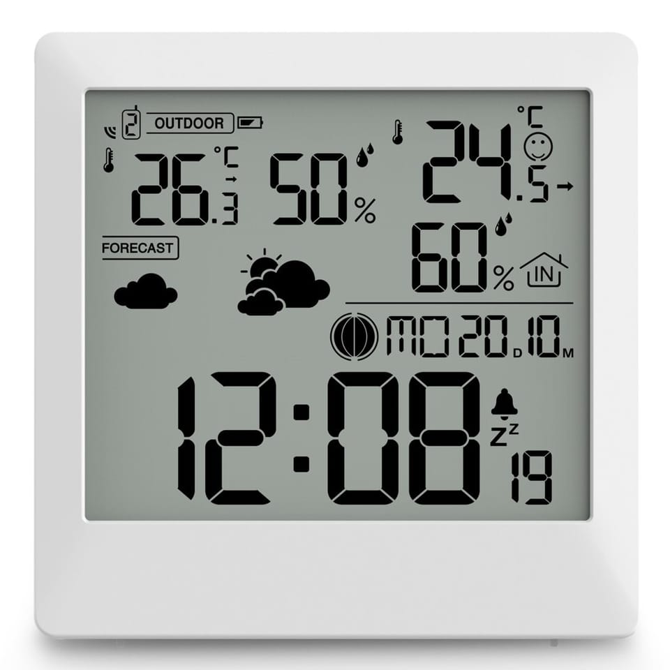 Precyzyjne pomiary i prognozyFunkcjonalność: Precyzyjne pomiary temperatury i wilgotności wewnątrz i na zewnątrz Możliwość przełączania między jednostkami °C i °F Prognoza pogody wyświetlana w czterech ikonach Wskaźnik komfortu cieplnego z intuicyjnymi symbolami Monitorowanie faz księżyca od nowiu po ubywający księżyc Wyświetlanie trendów zmian temperatury i wilgotności Funkcja zegara, kalendarza i alarmu z drzemką Produkcja z materiałów pochodzących ze zrównoważonych źródełPomiar temperatury i wilgotnościStacja pogodowa "Palawan" Hama zapewnia dokładny pomiar temperatury i wilgotności wewnątrz i na zewnątrz. Wyposażona w czujniki bezprzewodowe, umożliwia szybkie sprawdzenie warunków atmosferycznych w domu i jego otoczeniu, z opcją przełączania między jednostkami °C i °F.Prognoza w czterech ikonachDzięki wyświetlaniu prognozy w postaci czterech ikon, urządzenie sprawia, że sprawdzenie pogody jest wygodne i szybkie. Ikony reprezentują słoneczną pogodę, lekkie zachmurzenie, pochmurnie oraz deszcz, co pozwala na natychmiastowe rozpoznanie warunków atmosferycznych.Wskaźnik komfortu cieplnegoStacja pogodowa jest wyposażona w trzy poziomy wskaźnika komfortu cieplnego, które za pomocą symboli uśmiechnięta, neutralna lub smutna twarz prezentują aktualny stan klimatu w pomieszczeniu. Obserwacja faz księżycaIdealna dla miłośników astronomii, stacja wyświetla aktualne fazy księżyca od nowiu do ubywającego księżyca. To praktyczna funkcja, która wzbogaca prognozę codzienną o element kosmicznych obserwacji.Monitorowanie zmian warunkówFunkcja wyświetlania trendów umożliwia monitorowanie zmian temperatury i wilgotności, co pozwala przewidzieć, czy warunki atmosferyczne się poprawiają, pozostają stabilne czy pogarszają. Jest to idealne rozwiązanie dla osób wrażliwych na zmiany pogodowe.Wielofunkcyjna stacja z kalendarzemOprócz pomiaru temperatury i wilgotności, urządzenie pełni rolę zegara i kalendarza, oferując format 12- lub 24-godzinny oraz wyświetlanie dni tygodnia w siedmiu językach. Dodatkowo, funkcja alarmu i drzemki ułatwia codzienne wstawanie.Ekologiczne opakowanieStacja pogodowa "Palawan" jest produktem ekologicznym opakowanie wykonano z certyfikowanych materiałów FSC, co świadczy o pochodzeniu zrównoważonych źródeł. Wybierając ten produkt, wspierasz ochronę środowiska i dbasz o naturalne zasoby.Specyfikacja: Kolor: Biały Podświetlenie: Białe LED Zakres pomiaru wilgotności: 20-95% Zakres temperatury wewnętrznej: 0°C do +50°C (32°F do 122°F) Zakres temperatury zewnętrznej: -40°C do +70°C Tryb pracy: Radio Montaż: Na ścianie lub do postawienia Zasilanie: 2 baterie AA dla czujnika zewnętrznego, 2 baterie AAA dla stacji