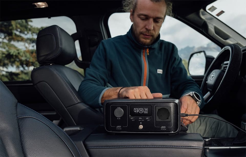Ładuj stację tak, jak Ci wygodnie. Korzystając z gniazda AC, przygotujesz ją do dalszej pracy w około godzinę. Istnieje też możliwość ładowania przez gniazdo samochodowe – dzięki temu możesz odnawiać energię RIVER 3 UPS podczas podróży, aby zasilać swój sprzęt po dotarciu na miejsce. Panele fotowoltaiczne o mocy do 110 W umożliwiają całkowite naładowanie w ciągu kilku godzin przy dobrych warunkach pogodowych. Możesz również skorzystać z generatora.