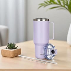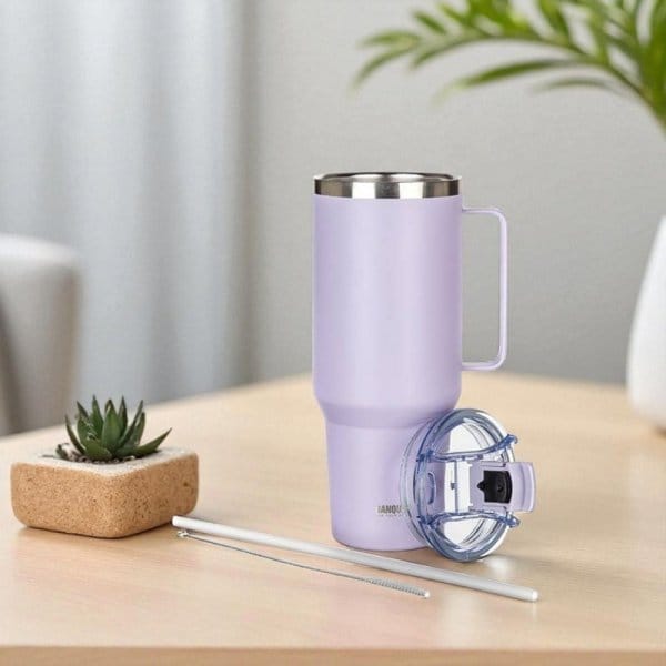 STALOWY KUBEK TERMICZNY TERMOS 1200ml Z RĄCZKĄ I SŁOMKĄ BANQUET TWAIN LILA