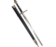 Stalowy Miecz Rycerski w Pochwie - Replika 105 cm – SW-161 Wysokiej jakości replika średniowiecznego miecza rycerskiego wykonana ze stali nierdzewnej. Elegancko wykończona rękojeść oraz starannie wykonany oplot nadają mu autentycznego charakteru. Do miecza dołączona jest elegancka pochwa, która nie tylko chroni ostrze, ale również dopełnia wygląd całego zestawu, pozwalając na efektowną ekspozycję. Ten ozdobny miecz to idealna dekoracja dla kolekcjonerów militariów, pasjonatów historii oraz fanów średniowiecza. INFORMACJE O PRODUKCIE: ?Długość całkowita: 105cm ?Waga: 1,2kg ?Materiał: stal nierdzewna ?Pochwa w zestawie – elegancka, ozdobna pochwa chroni i dopełnia wygląd miecza IDEALNY PREZENT DLA: ?Pasjonatów historii i rycerskich legend. ?Kolekcjonerów broni białej szukających estetycznych replik. ?Fanów fantasy i średniowiecza jako element wystroju wnętrza. ?Osób potrzebujących profesjonalnego rekwizytu do cosplayu lub pokazów. ZASTOSOWANIE: ?Świetny prezent dla pasjonata historii, średniowiecza i rycerskich legend ?Idealny element dekoracyjny do domu, biura czy gabloty kolekcjonerskiej ?Doskonały rekwizyt do pokazów, inscenizacji, cosplayu BEZPIECZEŃSTWO: ?Miecz nie jest zabawką – przeznaczony wyłącznie do celów dekoracyjnych ?Nieodpowiedni dla dzieci i osób poniżej 18. roku życia