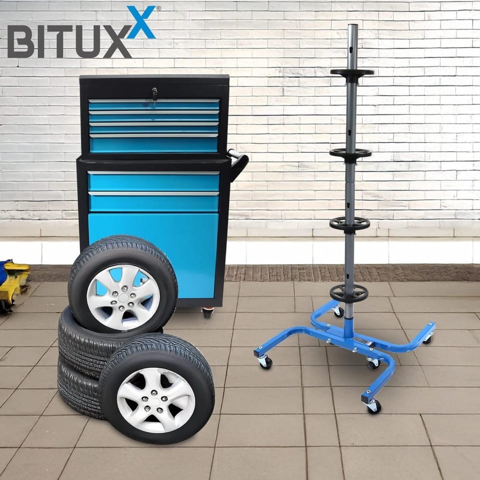 Mobilny stojak na opony Bituxx - bezpieczne i wygodne przechowywanie kół!