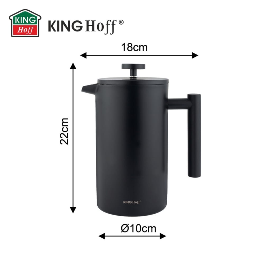 Model KINGHoff KH-1996 to nowoczesny French Press w matowej czerni, zaprojektowany dla osób, które chcą cieszyć się intensywnym smakiem kawy i herbaty, a jednocześnie cenią elegancki, designerski wygląd kuchennych akcesoriów. Wykonany ze stali nierdzewnej 304 i wyposażony w podwójne ścianki, świetnie utrzymuje temperaturę naparu, zapewniając wygodę użytkowania w domu, biurze, restauracji czy kawiarni.