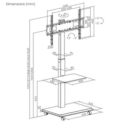 - Regulacja wysokości telewizora: 1319 / 1377 / 1404 / 1435 / 1462 / 1520 mm