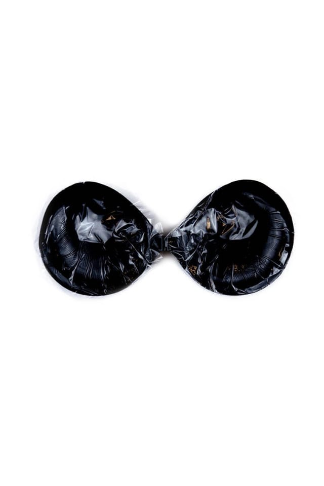 Materiałowy biustonosz samonośny w kolorze czarnym. Model posiada doskonale wyprofilowane miseczki, pokryte od wewnątrz bezpiecznym dla skóry - a jednocześnie mocnym - silikonowym klejem. Dzięki temu biustonosz będzie się doskonale trzymać na właściwym miejscu. Dodatkowe zabezpieczenie stanowią silikonowe, odpinane paski, zapinane wokół szyi lub na plecach - w zależności od potrzeb czy danej kreacji. Miseczki biustonosza są zapinane na niewielką sprzączkę, aby dać Ci lepszy efekt push-up.