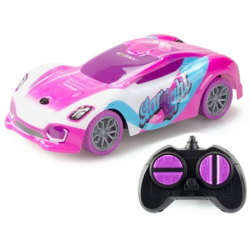 Star Light Wyścigówka w dziewczęcym wydaniu! Zdalnie sterowany samochód potrafi jeździć we wszystkich kierunkach, a kieruje się nim za pomocą dołączonego do zestawu pilota. Stylowe, fioletowe opony i urocza karoseria dodają autku niepowtarzalnego charakteru. Samochód i pilot zasilane są bateriami typu AA (niezawarte w zestawie). Cechy produktu: - zdalnie sterowany pojazd; - nowoczesny wygląd - wyścigówka; - działa na częstotliwości 2.4 GHz; Baterie: 3 x AA (pojazd), 2 x AA (pilot), niezawarte w zestawie; Wiek: 5+