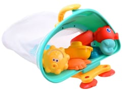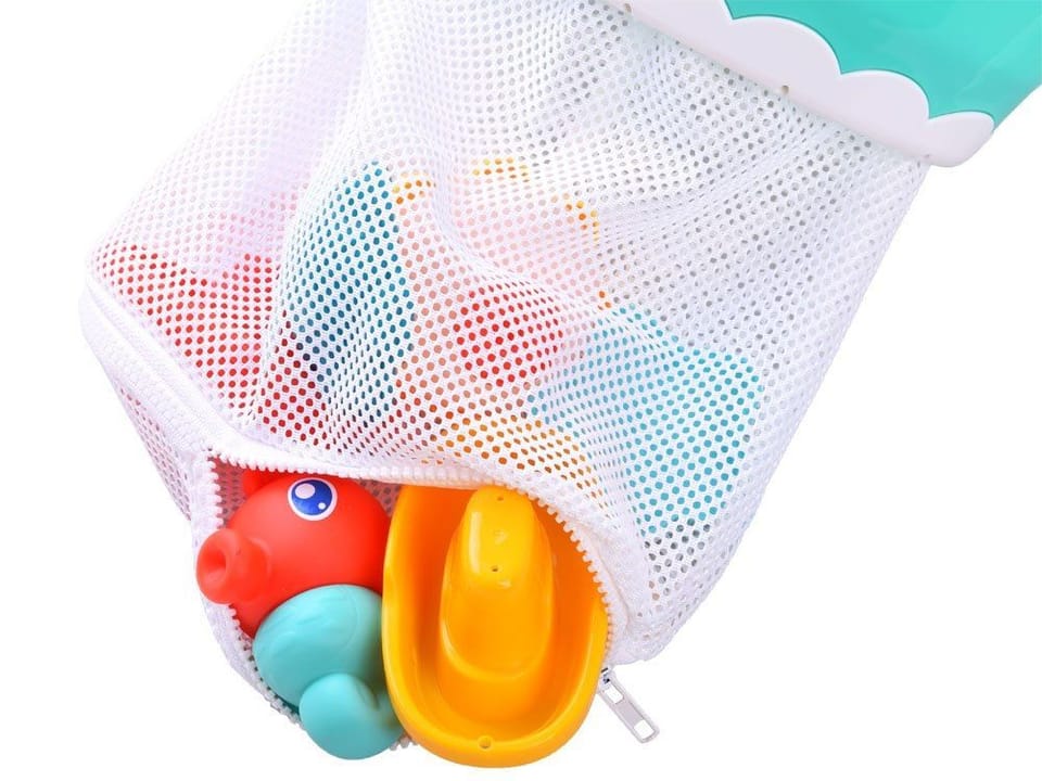 Statek z organizerem to kolorowy zestaw do zabawy w wodzie. Zestaw pozwoli na tworzenie fantastycznych morskich opowieści, przygód marynarskich itp. Plastikowa duża łódka z poręcznym uchwytem w kształcie kotwicy ma zamontowaną w dnie siatkę, w której można przechowywać mokre zabawki. Statek posiada także możliwość przymocowania go za pomocą przyssawek do płaskiej ściany w łazience. Miętowy kolor statku z żółtą kotwicą i biało czerwonym kołem ratunkowym świetnie nawiązuje do morskiej kolorystyki i będzie inspirował do tworzenia morskich opowieści.Siatka statku jest rozpinana od spodu, dzięki czemu wyjmowanie zabawek będzie dziecinnie proste.Zestaw zawiera:- duży plastikowy statek z siatką - przyssawka do płytek- plastikowe łódki- zwierzątka morskie z otworami (żółw, rozgwiazda, krab)- gumowy konik morski z sikawką- żółte uśmiechnięte słoneczko do przelewania wodyWymiary:- duży statek 28 x 20 x 17 cm- głębokość siatki (mierzona od dna statku) 22 x 23 x 12 cm- łódeczka 12 x 7 x 7 cm- foremka zwierzątko morskie ok. 8 x 8 x 4 cm- sikawka konik morski 11 x 8 x 7 cmŚwietna kolorystyka i grafika zabawek pozwoli na kreatywną, wielogodzinną zabawę. Zabawki posiadają idealny gabaryt do małych rączek dziecka. Po skończonej zabawie wszystkie drobne zabawki należy schować w siatce statku, aby obciekły z wody i się wysuszyły.Sklep Jokomisiada oferuje mnóstwo zabawek do zabawy w wodzie podczas kąpieli w wannie, basenie, lub innym akwenie wodnym.Zestaw został zapakowany w kolorowe opakowanie świetnie nada się na prezent.