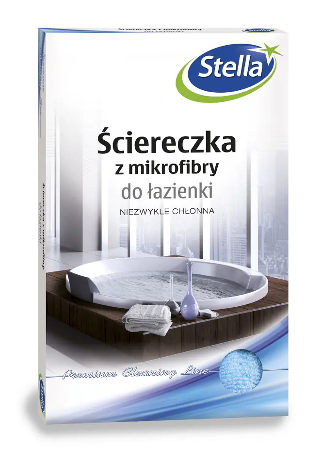 Ściereczka z mikrofibry do łazienki doskonale czyści nawet najmniejsze i trudno dostępne szczeliny. Jest niezwykle miękka, puszysta i chłonna, wchłania aż 0,3 litra wody. Skuteczna nawet bez użycia detergentów, co czyni ją doskonałą dla alergików i osób nadwrażliwych na chemię. Ściereczka jest zaopatrzona w zawieszkę z opisem konserwacji oraz logo Stella. Wykonana z wyjątkowo chłonnej i trwałej mikrofibry. Zapakowana w kartonowy box z praktycznym okienkiem, przez które można zobaczyć ściereczkę i dotknąć jej faktury. Dostępna w kilku wariantach kolorystycznych.