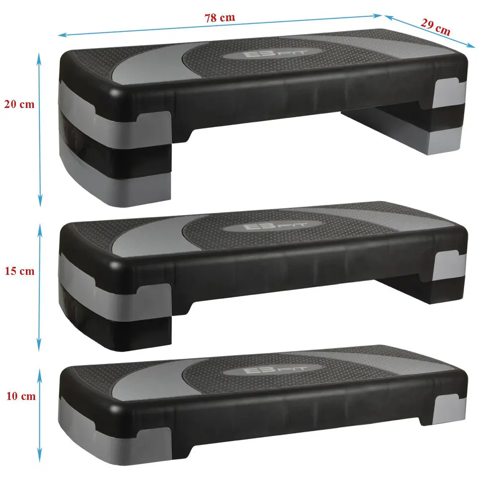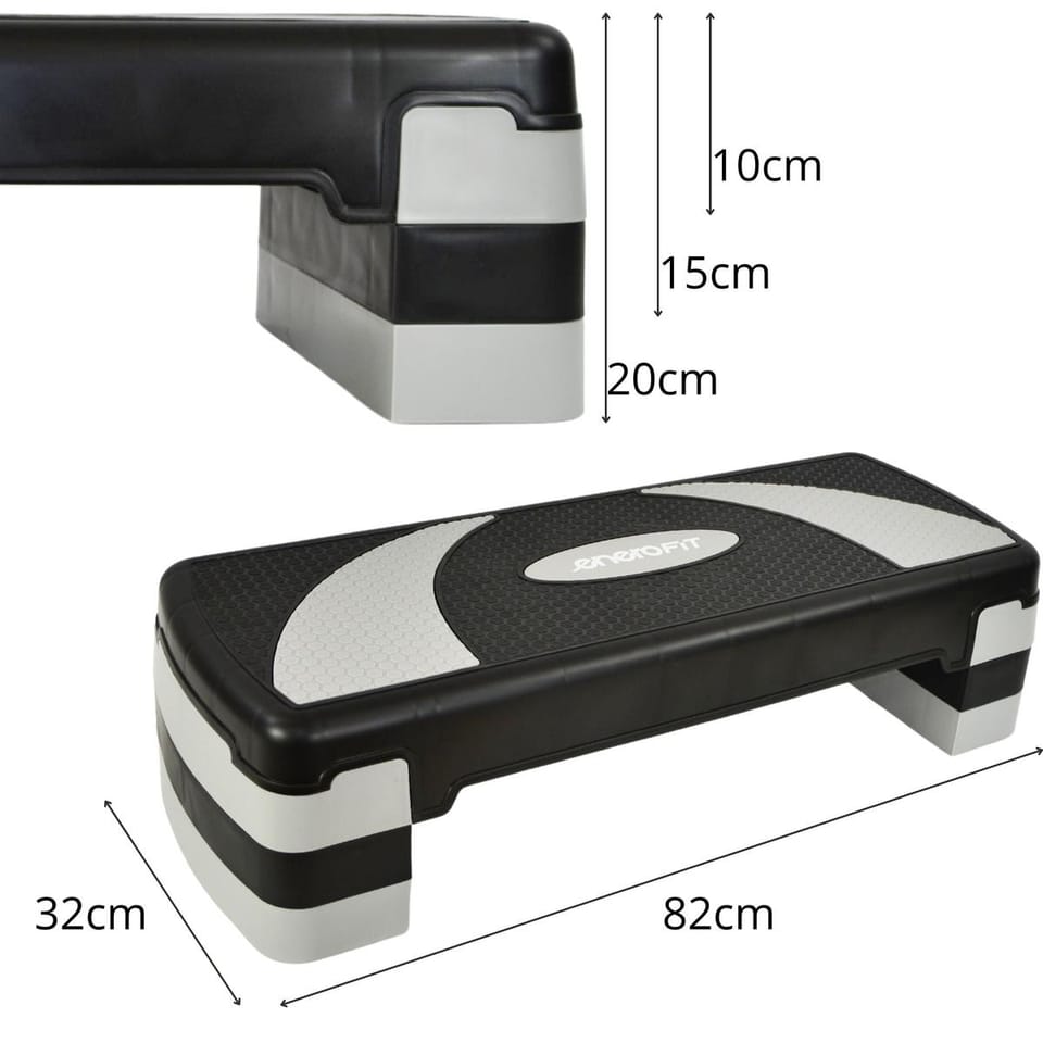 Parametry:- Wymiary ok: 78 x 29 cm (szer. x gł.)Wysokość stepera: 3 regulacje 10 - 15 - 20 cmWielkość dokładanych stopni: 29 x 12 x 6 cm (dł. x szer. x wys.)Materiał: PPWaga netto: 3,180 kgWaga brutto: 3,875 kgMaksymalne obciążenie: 150 kgWymiary opakowania (color box): 80 x 31 cm x 10,5 cm (szer. x wys. x gł.)Kolor: czarny, szaryKlasa: H – CMarka: ENERO FIT