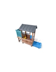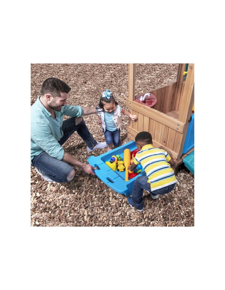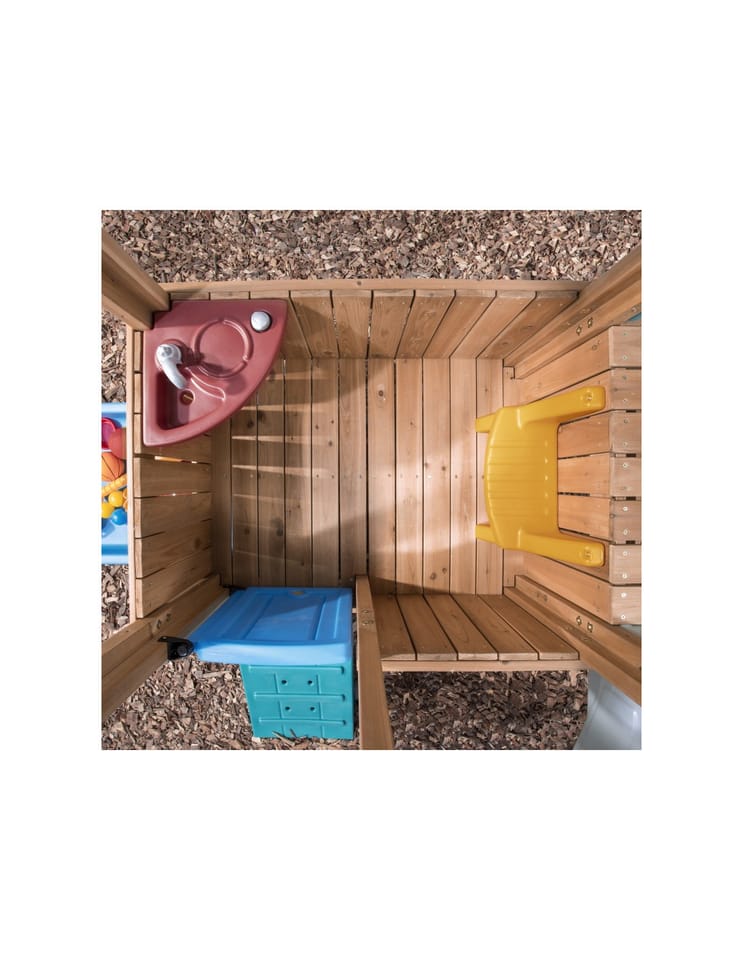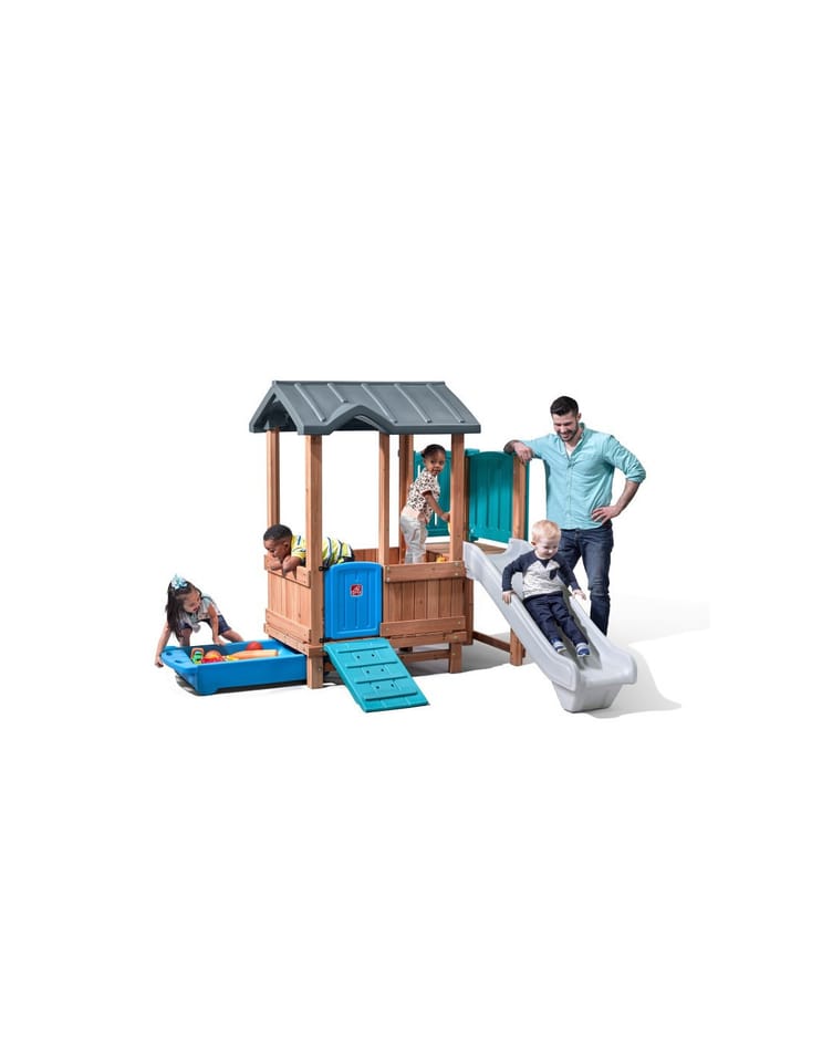 Ten uroczy domek do zabawy i zjeżdżalnia zapewnia nieograniczone możliwości! Może to być zamek, chata, statek piracki lub cokolwiek, co chcą sobie wyobrazić! Ten stylowy zestaw do zabawy na podwórku wykorzystuje mieszane materiały, aby uzyskać niepowtarzalny wygląd. Konstrukcja wykonana głównie z drewna tworzy klasyczny wygląd. Kolorowe plastikowe elementy są przyjazne dla dzieci i wytrzymają wiele godzin zabawy! Ten drewniany i plastikowy domek do zabawy pozwoli maluchom bawić się cały dzień!
