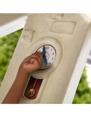 - - Ponadto domek został wyposażony w kominek, pułki na akcesoria, zegar z ruchomymi wskazówkami oraz doniczki, w których można posadzić kwiaty.