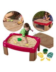 Stół do piasku podwyższany z przykrywą to idealne uzupełnienie wyposażenia każdego placu zabaw. Piaskownica umieszczona jest na czterech nogach, dzięki czemu możemy ją w łatwy sposób przemieszczać. Idealna do zabawy na zewnątrz jak i wewnątrz domu. W piaskownicy możemy umieścić tradycyjnie piasek i dzięki pokrywie z elastycznymi opaskami możemy zabezpieczyć piasek przed zabrudzeniem. Zamiast piasku możemy również umieścić w piaskownicy groch lub makaron. Idealne rozwiązanie do zabaw rozwijających zdolności sensoryczne u dzieci. Na pokrywie wyrzeźbiony został tor, na którym nasza pociecha może się bawić swoimi ulubionymi małymi pojazdami, co niewątpliwie jest dodatkową atrakcją produktu. Do zestawu dołączone zostało wiaderko, dwie łopatki i 2 pary grabi. Produkt przeznaczony dla dzieci powyżej 2 roku życia.
