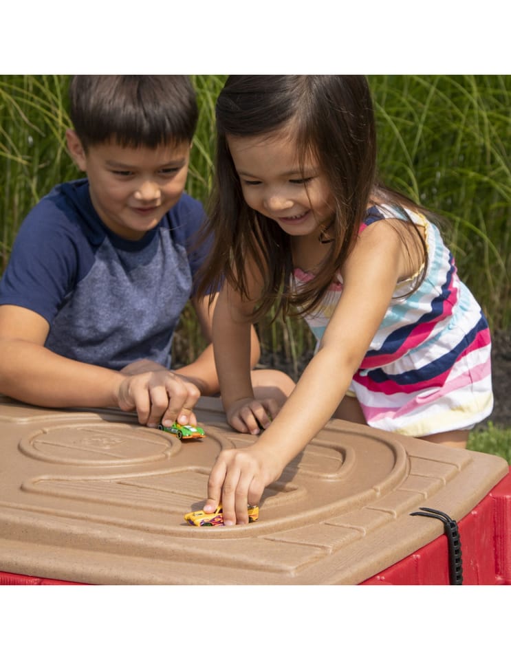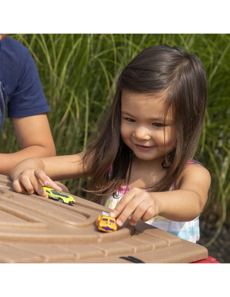 - - na pokrywie wyrzeźbiony został tor, na którym nasza pociecha może się bawić swoimi ulubionymi małymi pojazdami