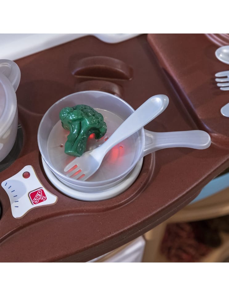 Rewelacyjny kącik kuchenny "Zabawa z Przyjaciółmi" od amerykańskiej marki Step2 to idealne miejsce do zabawy dla dzieci. Wyposażona w kuchnię z efektami dźwiękowymi i świetlnymi oraz wiele akcesoriów zapewni dzieciom godziny zabawy. Dzięki dużym rozmiarom z kuchni może korzystać więcej niż tylko jedno dziecko. taka kuchnia zachwyci każdego małego kucharza i zachęci do kreatywnej zabawy.