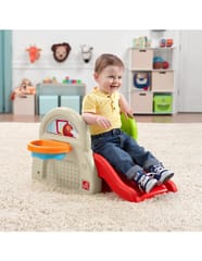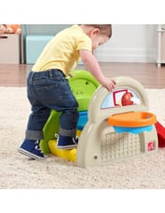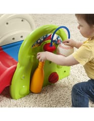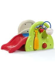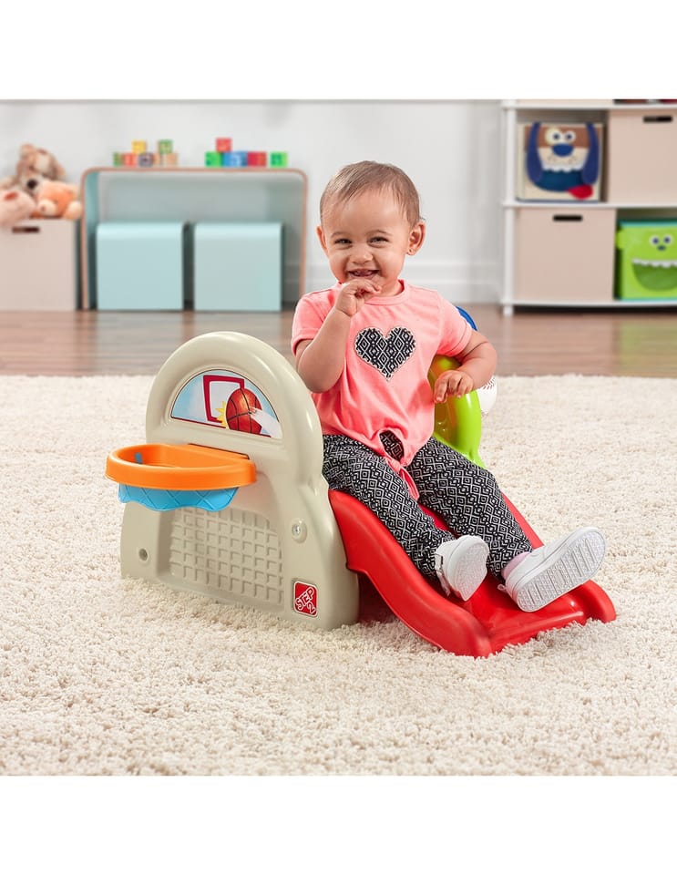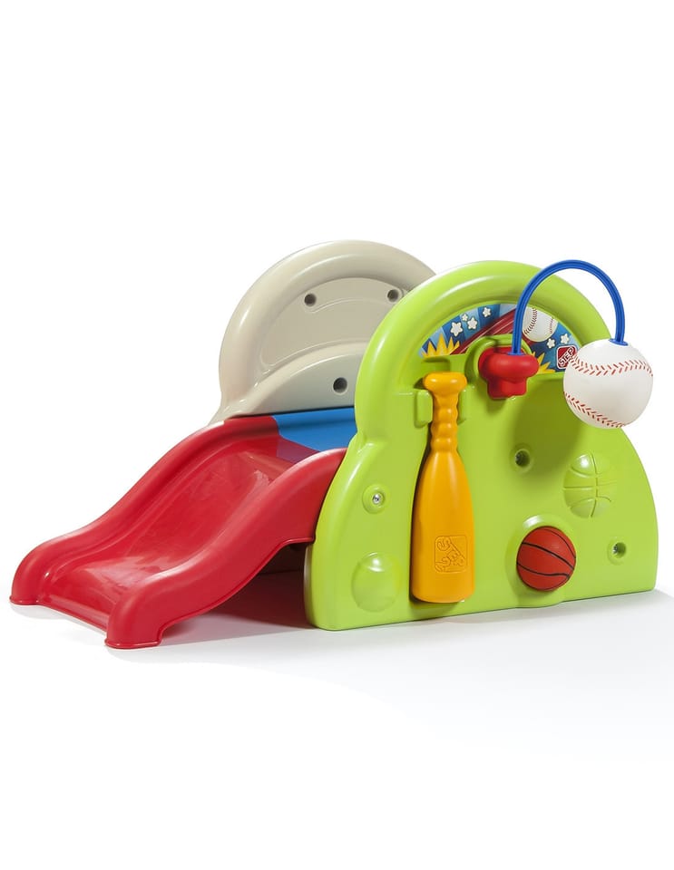 Plac zabaw od firmy STEP2 ma wiele sposobów na zabawę. W tym wciągającym centrum aktywności dla małych dzieci jest głównie tematyka sportowa. Dzieci mogą ćwiczyć równowagę i motorykę, wspinając się po bardzo szerokim stopniu i zjeżdżając na zjeżdżalni po drugiej stronie. Jest także piłka oraz obręcz do koszykówki co pozwala maluchowi wrzucać do celu. Dodatkowo można użyć dołączonego kija, aby uderzać w uwiązaną piłkę baseballową! Dzięki tej zabawce sportowej, zaprojektowanej specjalnie dla najmłodszych, Twój mały robaczek będzie skakał do domu, wślizgiwał się do bazy i robił niesamowite wsady do kosza podczas zabawy. Gdy zabawa się skończy, użyj wbudowanego schowka, aby schować piłkę do koszykówki i wciśnij kijek na zewnętrznej ścianie centrum aktywności, aby wszystko było blisko na następny dzień zabawy.