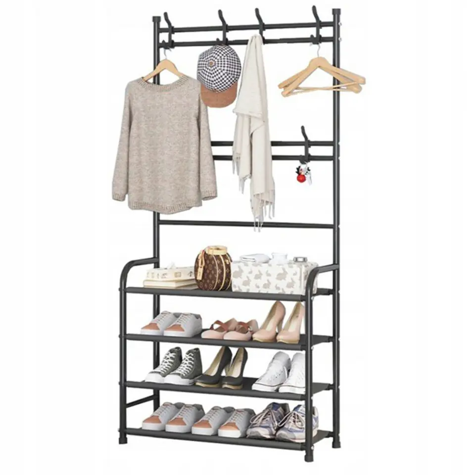 Stojący wieszak na ubrania, odzież, 4 półki na buty 80 x 26 x 152 cm SZ37