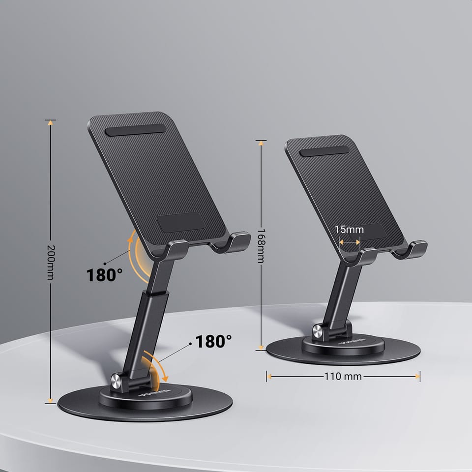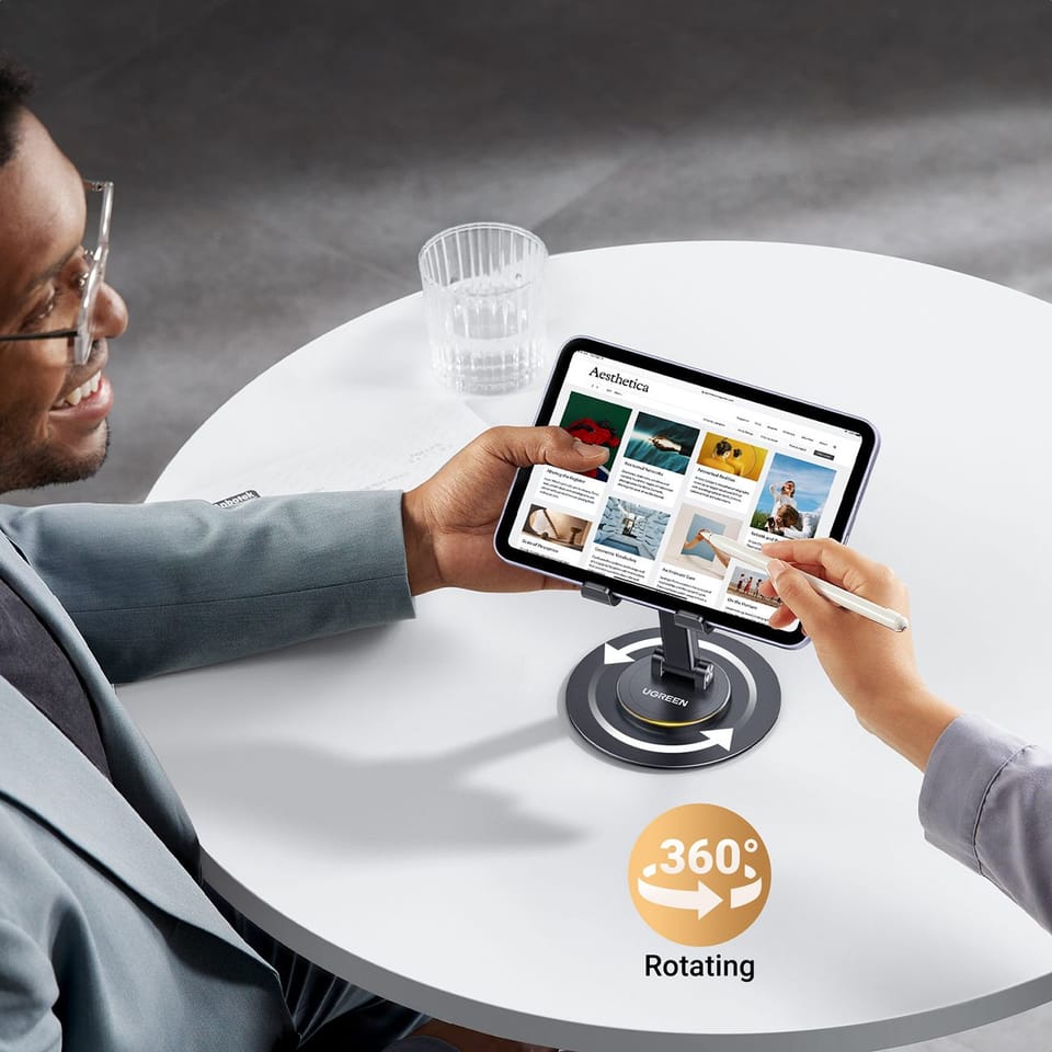 Kod produktu: 1027619Ugreen LP805 to doskonały wybór dla każdego, kto ceni wygodę i funkcjonalność. Dzięki regulowanej wysokości i obrotowemu uchwytowi zapewnia maksymalny komfort użytkowania. Uniwersalna kompatybilność i składana konstrukcja sprawiają, że będzie to niezastąpiony gadżet w Twoim biurze czy domu.Dostosowuje wysokość do Twoich potrzebCzy trzymając telefon w dłoni, zdarza Ci się patrzeć w dół na ekran telefonu? Czujesz przez to dyskomfort w szyi? Stojak Ugreen LP805 ma regulowaną wysokość od 168 mm do 200 mm, co pozwala na idealne dopasowanie poziomu ekranu do Twoich oczu. Możesz cieszyć się wygodnym przeglądaniem treści, niezależnie od tego, czy siedzisz, czy stoisz. Stojak jest łatwy w regulacji.Gwarantuje najlepszy kąt widzeniaNie musisz już martwić się o niewygodny kąt widzenia ekranu. Ugreen LP805 oferuje pełną swobodę dzięki możliwości obrotu o 360deg;. Precyzyjny mechanizm obrotowy zapewnia płynne i stabilne ustawienie, dzięki czemu urządzenie pozostaje w wybranej pozycji. Zapewnij sobie komfort użytkowania telefonu podczas oglądania filmów, prowadzenia wideorozmów czy korzystania z aplikacji.Zajmuje mało miejscaCzęsto podróżujesz i potrzebujesz praktycznego akcesorium, które łatwo zmieści się w torbie? Ugreen LP805 to idealne rozwiązanie. Dzięki składanej konstrukcji stojak możesz złożyć do grubości zaledwie 4,3 cm. To sprawia, że jest nie tylko niezwykle poręczny, ale także łatwy do przechowywania. Możesz go zabrać ze sobą wszędzie, bez obaw o dodatkowe obciążenie bagażu. Po złożeniu zajmuje minimalną ilość miejsca.Kompatybilny z wieloma urządzeniamiStojak Ugreen LP805 jest kompatybilny z urządzeniami o wielkości do 9,7 cala, takimi jak smartfony, tablety, czytniki e-booków czy Nintendo Switch. To oznacza, że możesz go używać z różnymi urządzeniami, bez konieczności kupowania dodatkowych akcesoriów. Uniwersalność stojaka sprawia, że jest to praktyczny wybór dla każdego użytkownika.Stabilny i bezpiecznyUgreen LP805 został wykonany z mocnych materiałów, takich jak stop aluminium, PC i silikon. Dzięki temu jest nie tylko trwały, ale także stabilny. Antypoślizgowe podkładki zapewniają dodatkową stabilność, chroniąc Twoje urządzenie przed przypadkowym przesunięciem.Najważniejsze cechy: