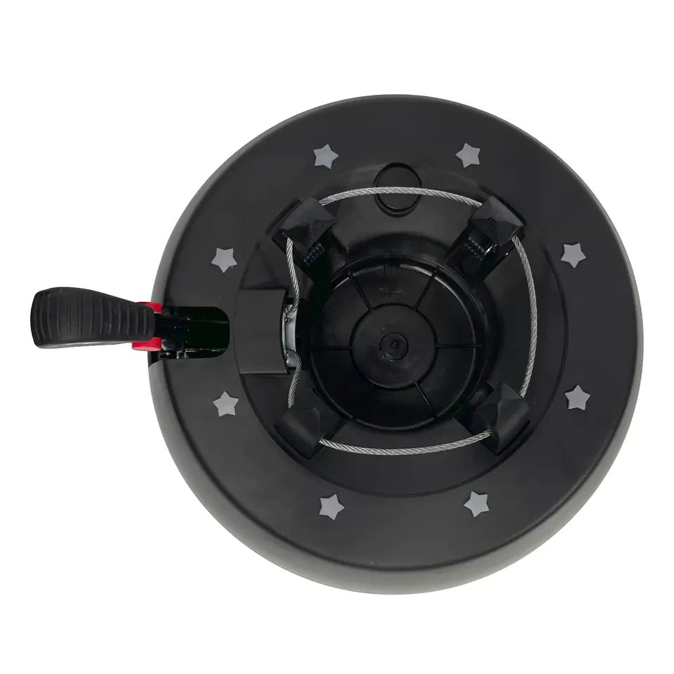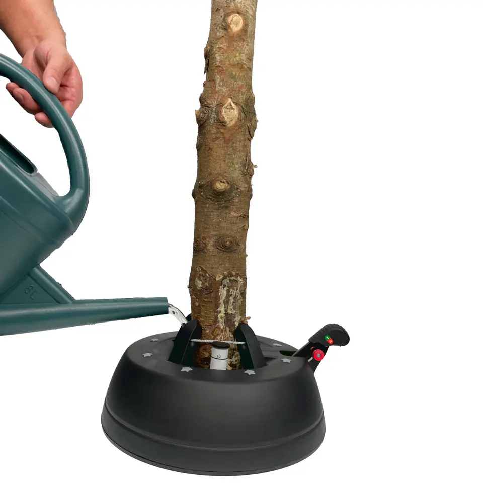 Stojak choinkowy Kamai® START 2, stworzony z myślą o choinkach do 2,5 metrów, oferuje stabilność dzięki obciążeniu 4,2 kg, pojemnikowi na 2,5 litrów wody oraz opatentowanemu systemowi 4 haków, które automatycznie zaciskają pień. Wyposażony jest w wskaźnik poziomu wody, blokadę dźwigni zabezpieczającą przed przypadkowym otwarciem oraz solidny mechanizm zaciskowy.