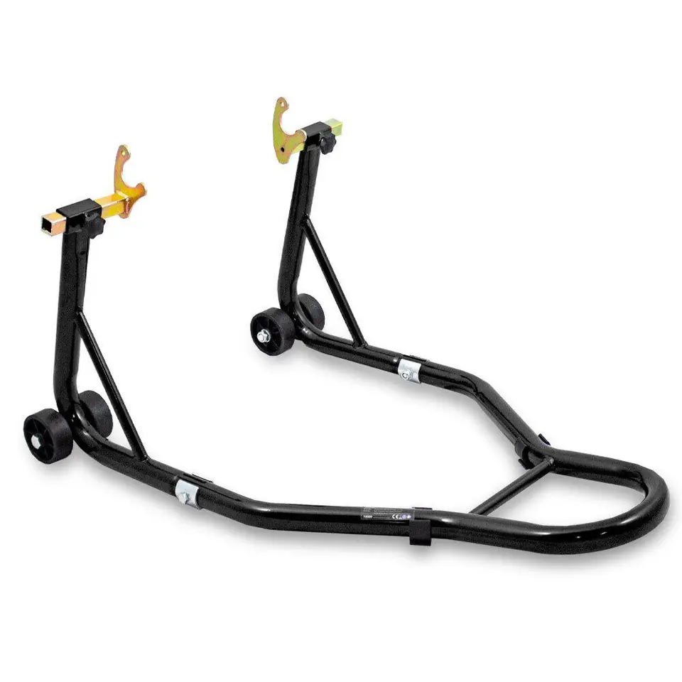 STOJAK / UCHWYT DO MOTOCYKLA TYŁStojak do tylnego koła motocykla. Nadaje się prawie do wszystkich modeli motorów: DUCATI, SUZUKI, HONDA, KAWASAKI, YAMAHA, APRILIA, TRIUMPH, BMW, UVM. Stojak przydatny w każdym garażu oraz warsztacie. Dzięki niemu w łatwy sposób dokonasz napraw oraz konserwacji, ale i również w łatwy sposób umyjesz opony, posmarujesz, wymienisz łańcuch, itd. Sprawdza się również podczas przechowywania motocykla, ponieważ zajmuje wtedy mniej miejsca, opony nie są obciążone, zatem możesz zapomnieć o ryzyku odkształcenia opon. Duża powierzchnia mocująca zapewnia stabilność, a gumowe uchwyty chronią motor przed zarysowaniem. Uchwyt mocujący można regulować w zakresie od 210 do 310 mm.