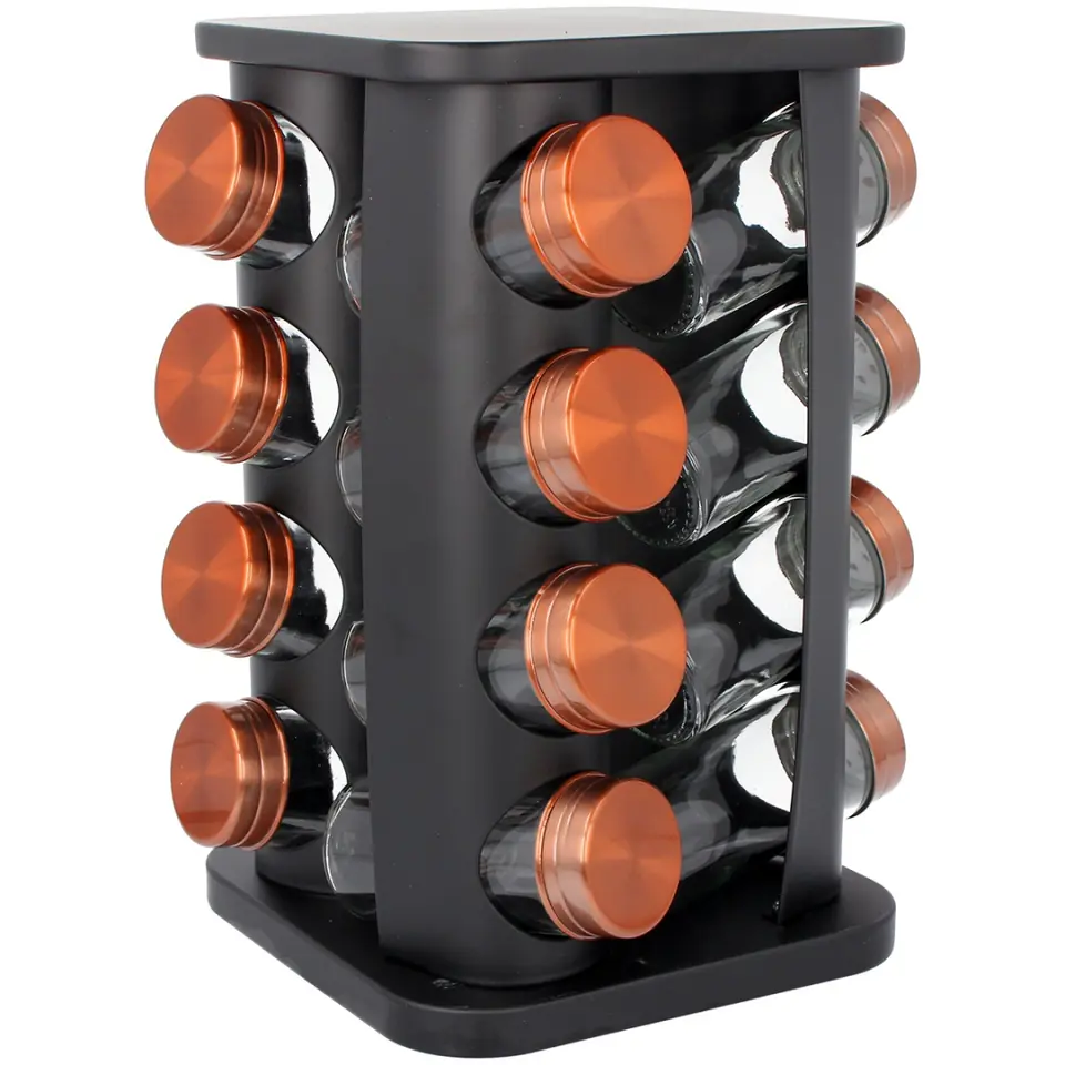 Obrotowy stojak ze stali nierdzewnej na 16 pojemników z przyprawami.